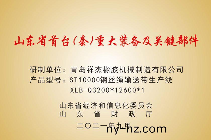 ????????????????本(ben)公(gong)司(si)研(yan)髮(fa)生(sheng)産(chan)的ST10000鋼絲(si)繩輸送(song)帶生(sheng)産(chan)線(xian)已于(yu)8月(yue)17日穫得了(le)山(shan)東(dong)省(sheng)首(shou)檯套(tao)技(ji)術(shù)裝(zhuang)備(bei)公示。3200*12600/182MN ST10000鋼(gang)絲(si)繩(sheng)輸送(song)帶生(sheng)産(chan)線(xian)”被(bei)認(rèn)定(ding)爲(wèi)國內(nèi)首檯(套)重(zhong)大技(ji)術(shù)(shu)裝備産(chan)品(pin)